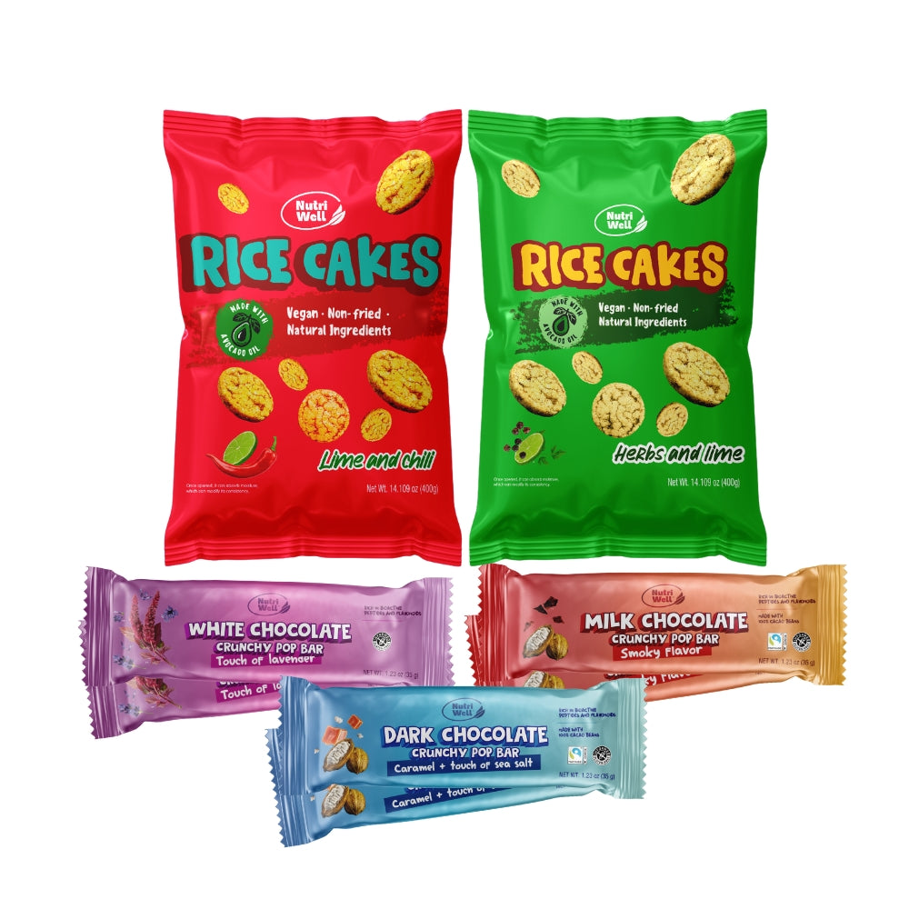 Experience a harmonious blend of flavors and textures with our pack, featuring light, crispy bars and naturally popped rice crisps. Each product is made with superfood ingredients, plant-based energy, and a touch of Mexican inspiration.